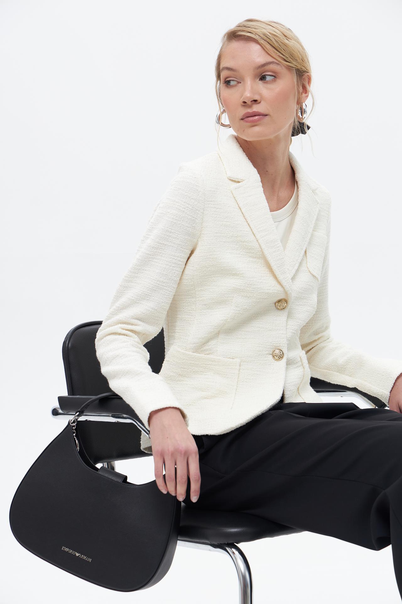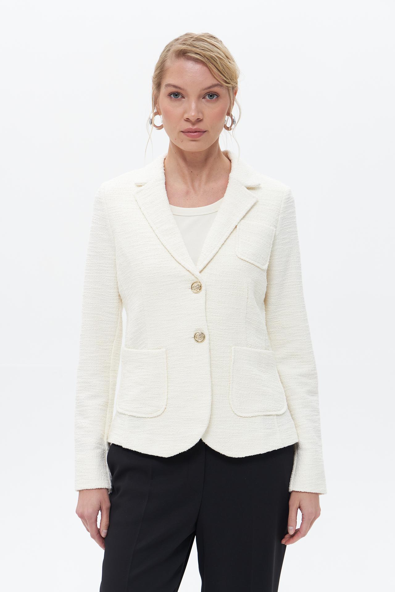 Жакет Oui, кремовый, твидовый с золотыми пуговицами
