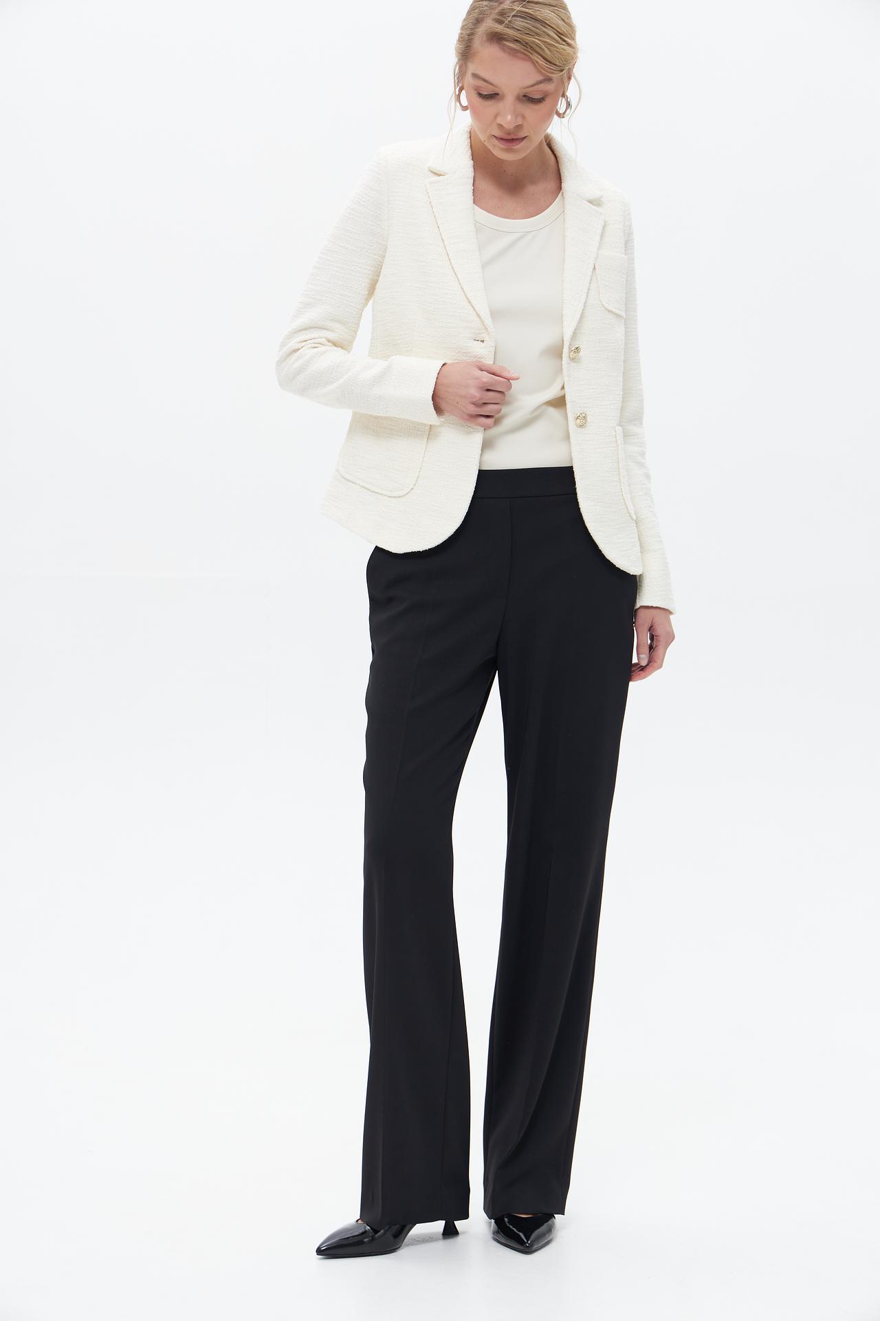 - Твидовая фактура – придает жакету изысканный вид и делает его универсальным элементом гардероба.