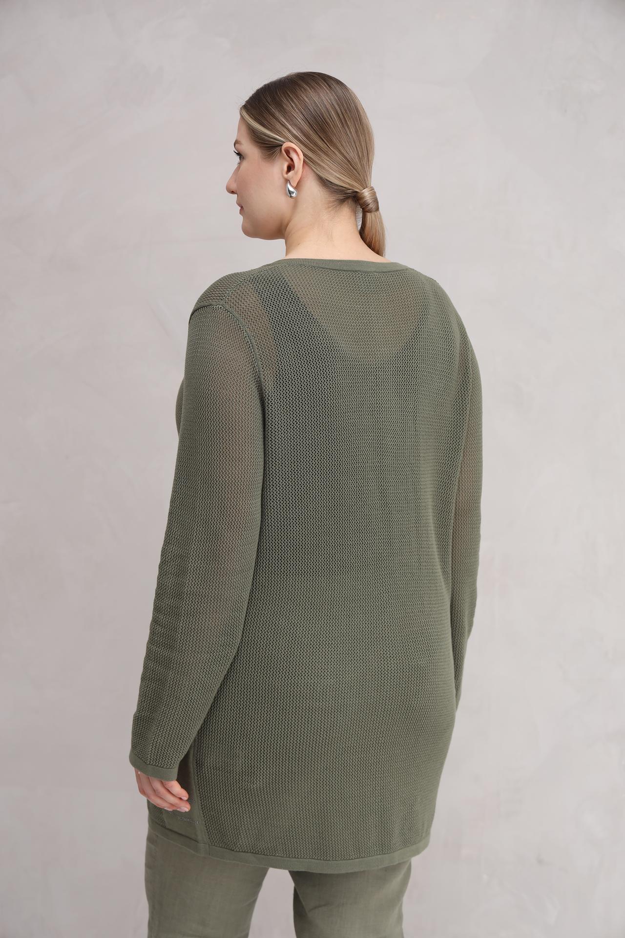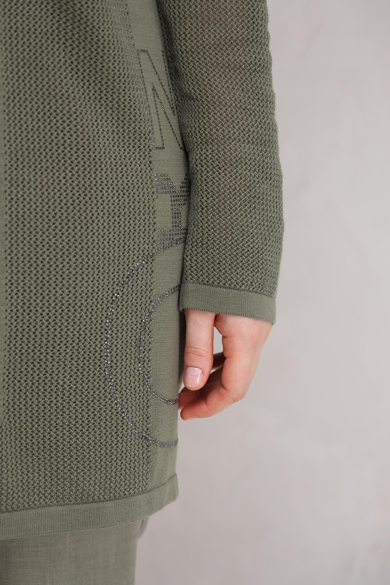 Этот жакет станет прекрасным дополнением к вашему гардеробу, подчеркивая вашу индивидуальность. Легкость и приятные тактильные ощущения позволят вам чувствовать себя комфортно в течение всего дня. Оливковый цвет изделия добавляет образу свежести и актуальности.