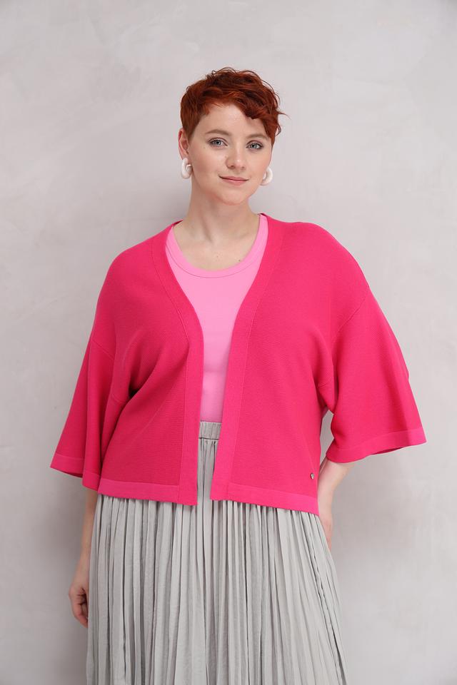 Жакет Rabe collection фуксии – это стильная и удобная модель с короткими рукавами и открытым верхом. Жакет выполнен из мягкого трикотажа, который обеспечивает комфорт в носке и хорошо держит форму. Состав: хлопок 50%, полиакрил 50%