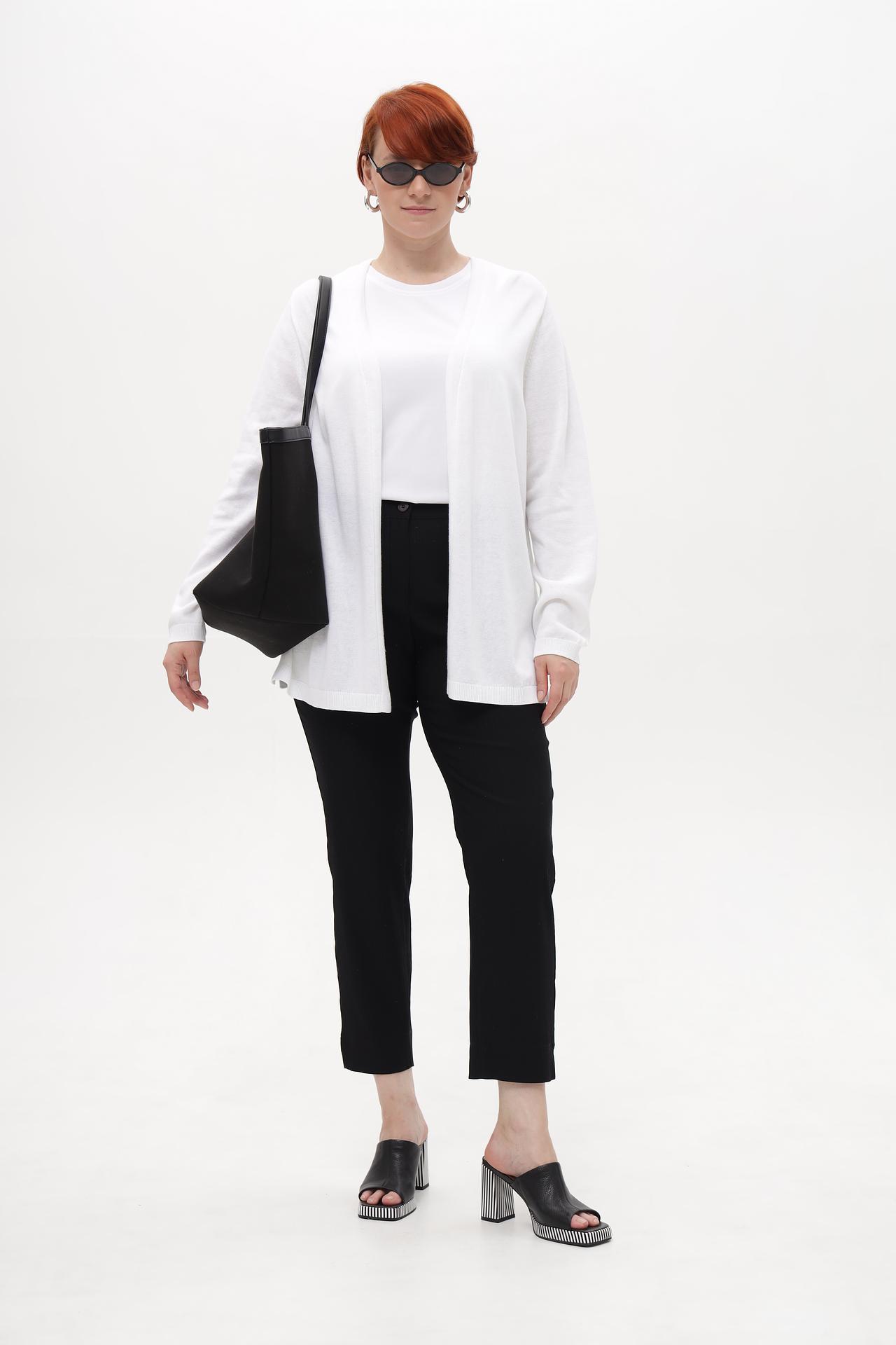 - Дизайн: Классический крой без застежки с V-образным вырезом. Отсутствие пуговиц или молний придает жакету минималистичный и современный вид, облегчая его сочетание с различной одеждой.