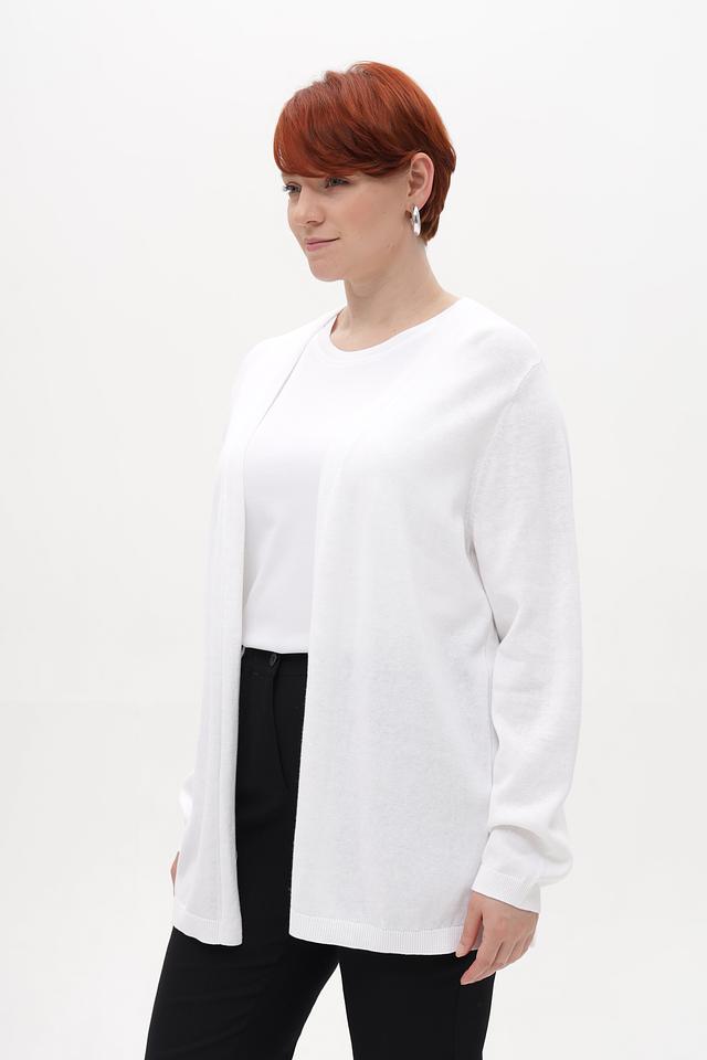 Белый жакет Samoon из хлопка и льна – стильное и комфортное решение для прохладной погоды. Модель свободного кроя с длинными рукавами и открытой передней частью. Состав: 85% хлопок, 15% лен. Состав: хлопок 85%, лен 15%