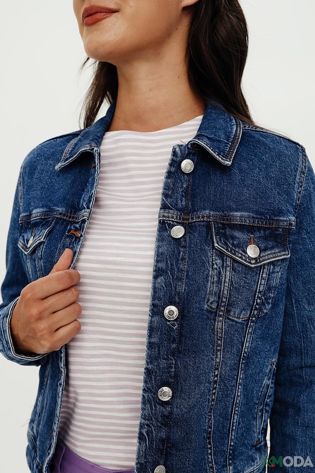 Жакет выполнен из высококачественного хлопка с небольшим добавлением эластана, что обеспечивает комфорт в носке и сохранение формы. Застежка на пуговицах позволяет легко регулировать посадку. Отделка в виде эффекта потертости придает жакету непринужденный и стильный вид.