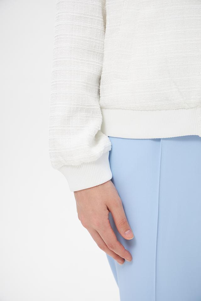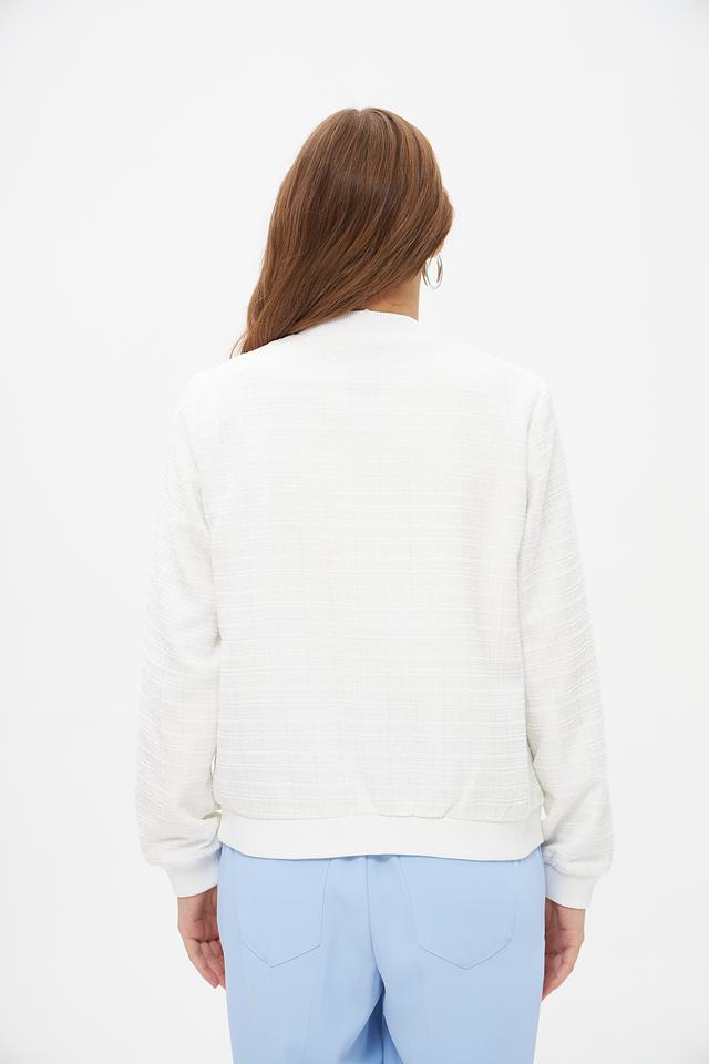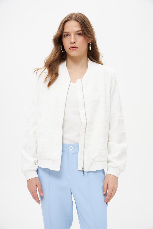 Жакет имеет стеганую фактуру, которая придает ему особый шарм и текстуру. Застежка-молния обеспечивает удобство и надежность. Воротник-стойка добавляет современный акцент. Длинные рукавы делают жакет подходящим для прохладной погоды.