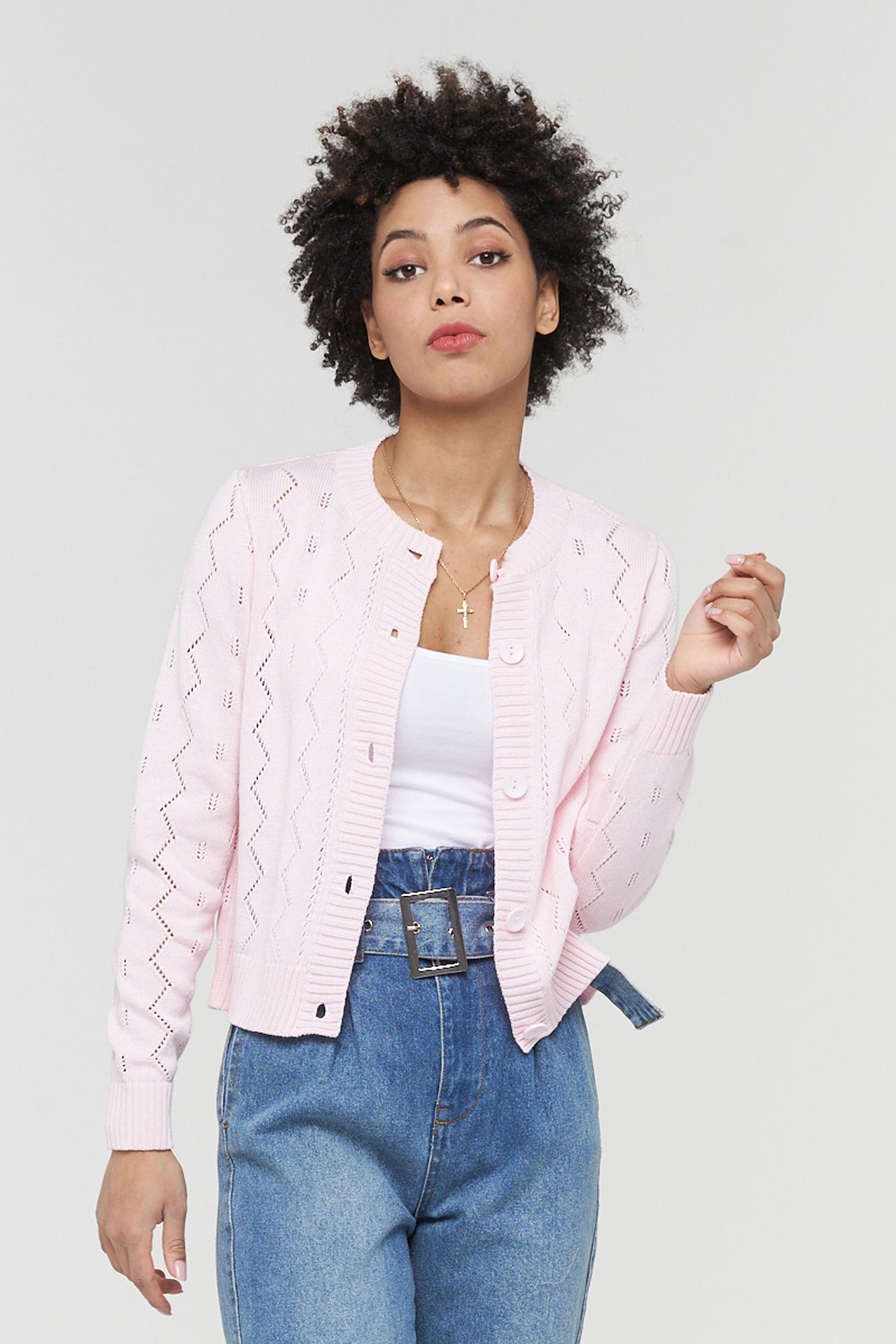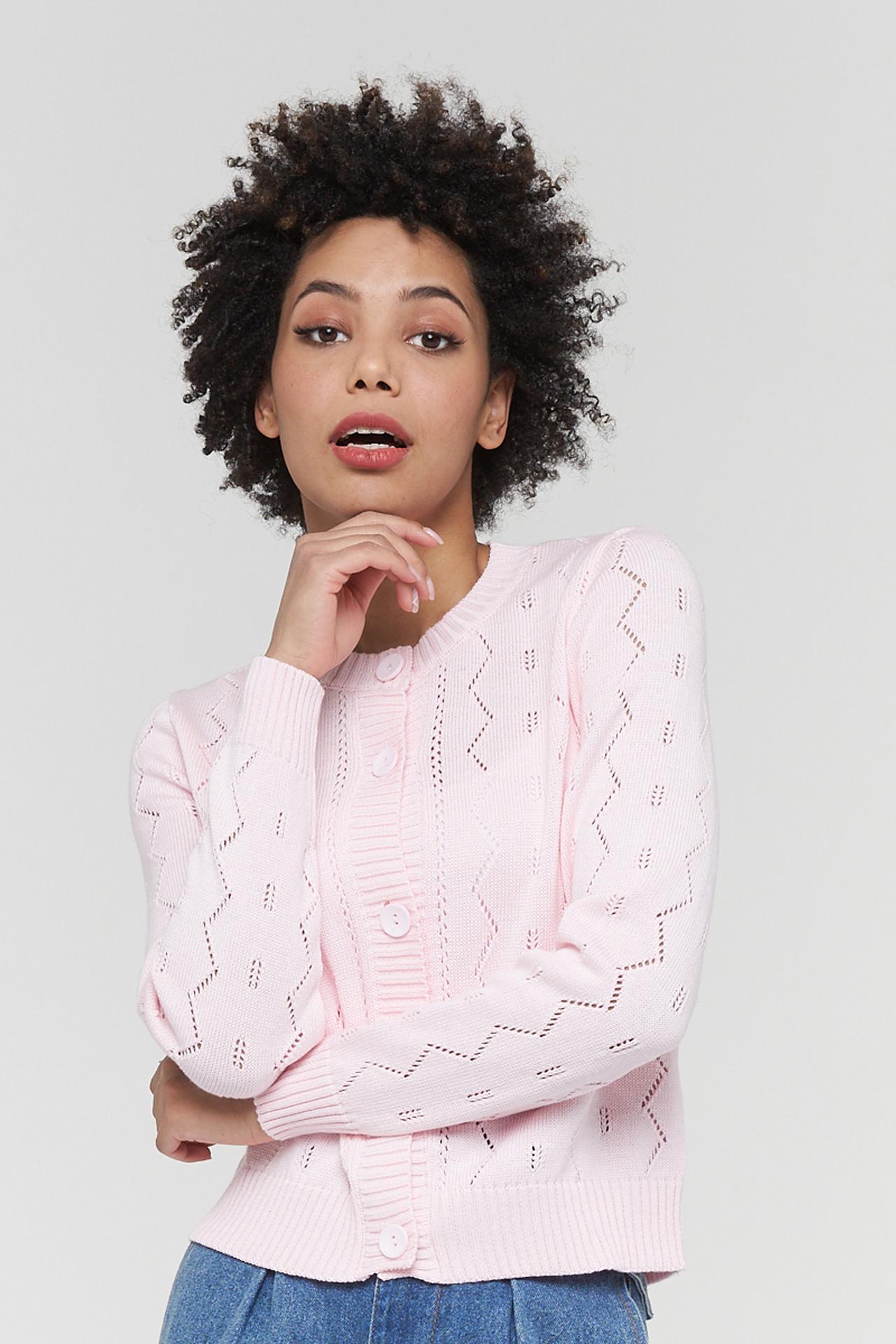 Жакет VAY, ажурная вязка, розовый