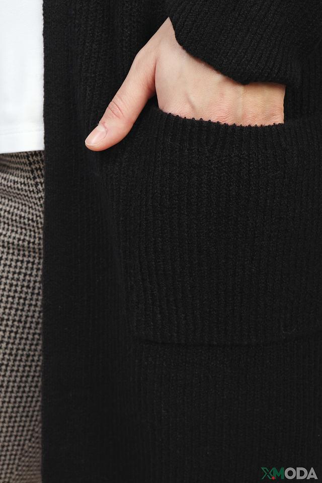 Кардиган имеет удлиненный крой и свободный силуэт, что обеспечивает свободу движений и позволяет создавать многослойные образы. Капюшон добавляет функциональности и защищает от непогоды. Текстура вязки придает кардигану особый шарм.
