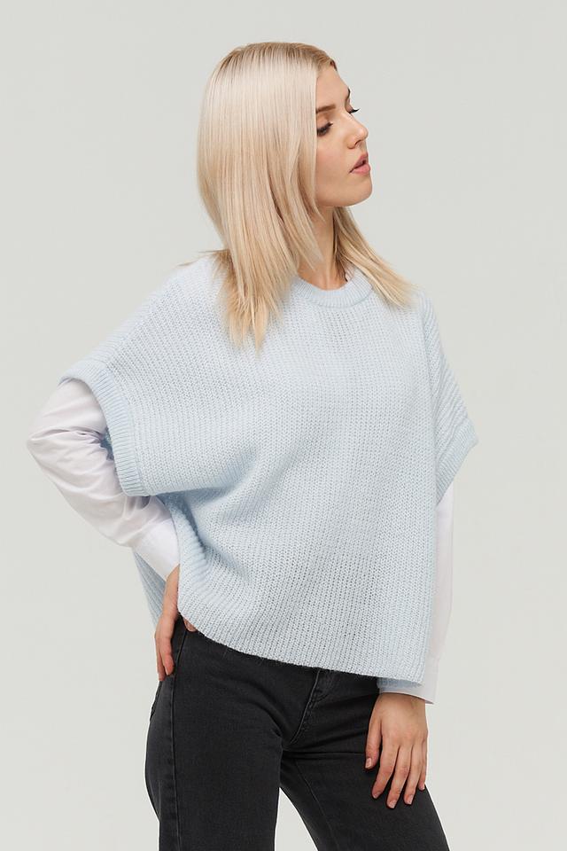 Голубой вязаный жилет BE YOU – стильное дополнение к вашему гардеробу. Изготовлен из мягкого акрила с добавлением мохера и полиамида. Удобный крой и актуальный цвет. Состав: акрил 70%, полиамид 25%, мохер 5%