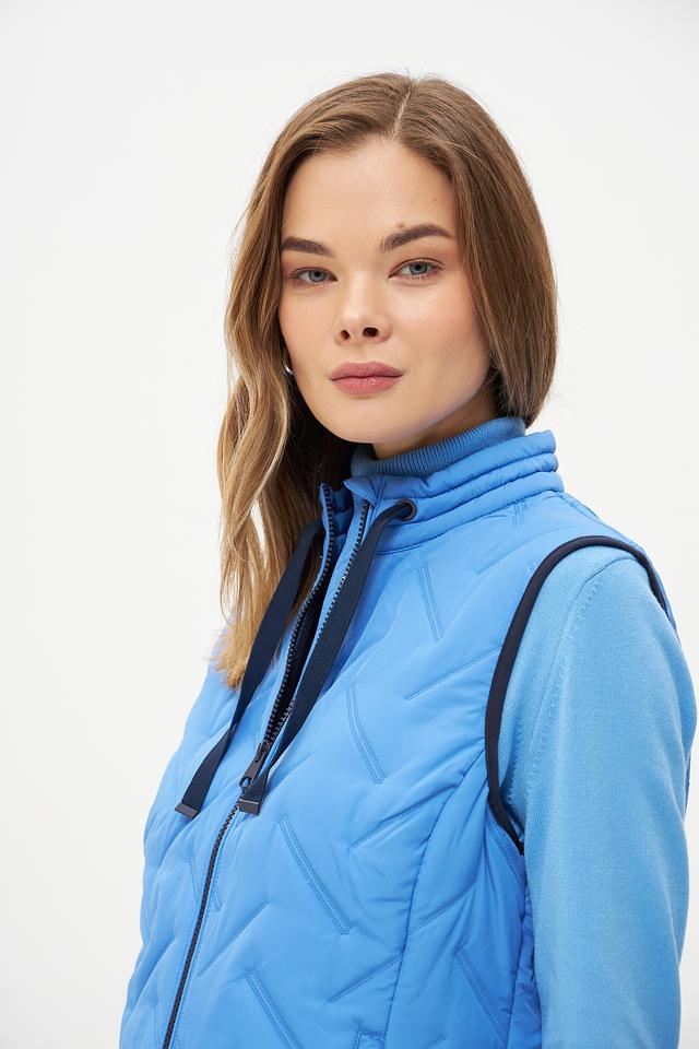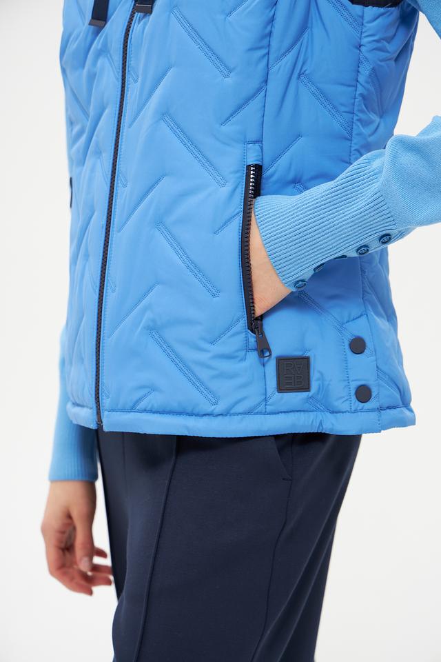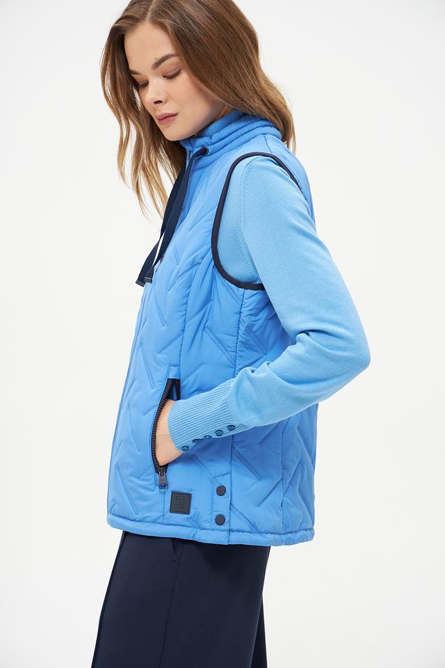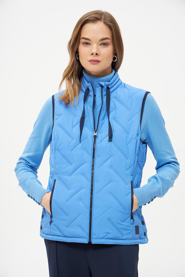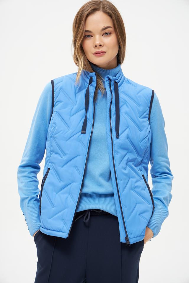 Голубой стеганый жилет Rabe collection из 100% полиэстера – практичный и стильный выбор для прохладной погоды. Удобная застежка-молния и боковые карманы обеспечивают комфорт и функциональность. Состав: полиэстер 100%