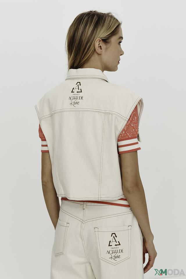 Бежевый жилет Twin Set – стильная модель из денима с контрастной отделкой. Удобный крой и актуальный дизайн делают этот жилет отличным дополнением к вашему гардеробу. Состав: хлопок 100%