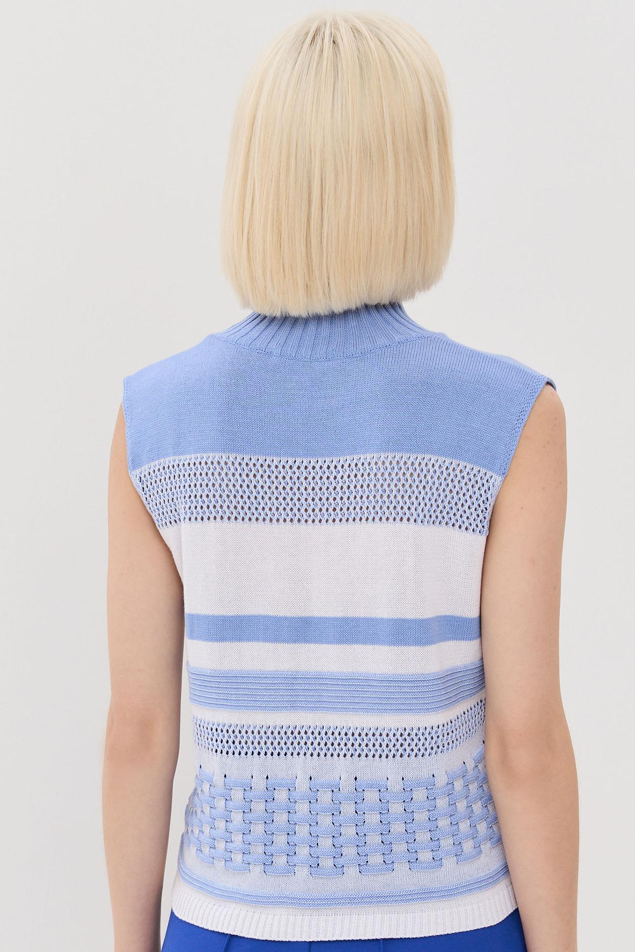 - Уникальный дизайн: Изысканный крой и оригинальный дизайн с горизонтальными полосами, ажурные вставки и необычный плетением нитей внизу изделия создают неповторимый образ. Жилет привлекает внимание и подчеркивает индивидуальность.