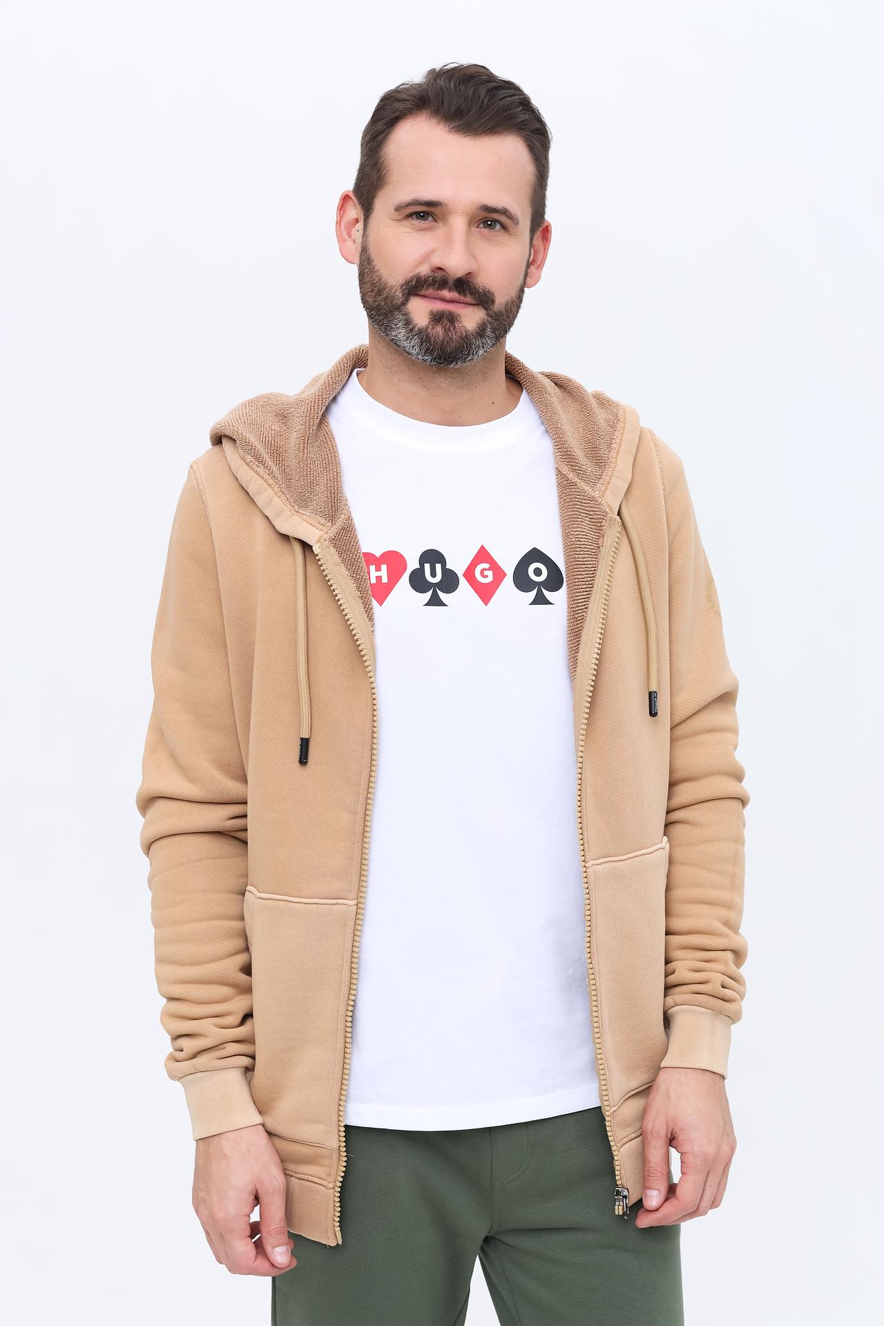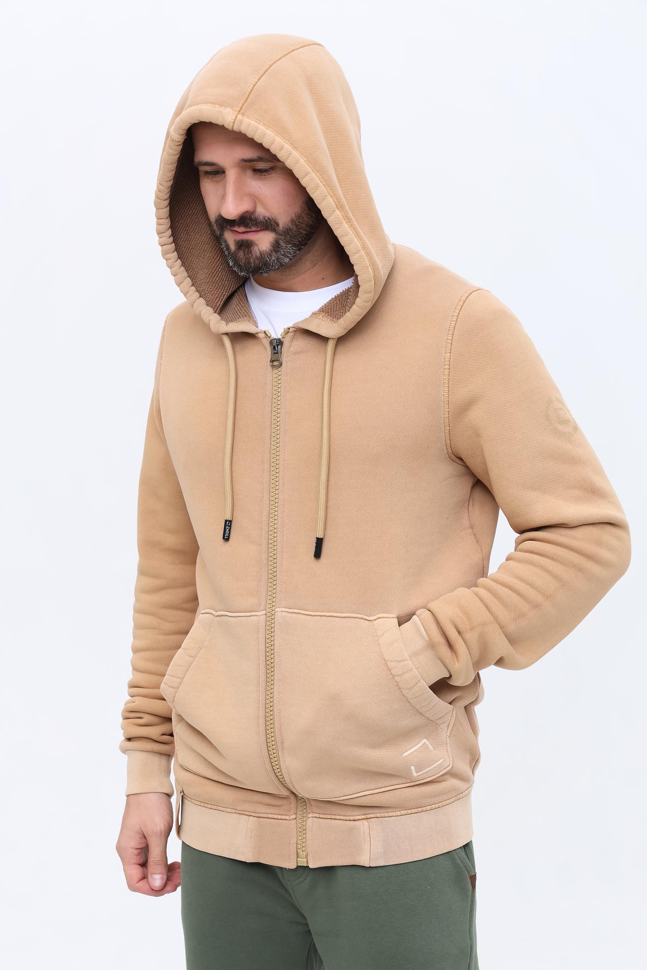 Бежевый кардиган Zhrill мужской на молнии с капюшоном