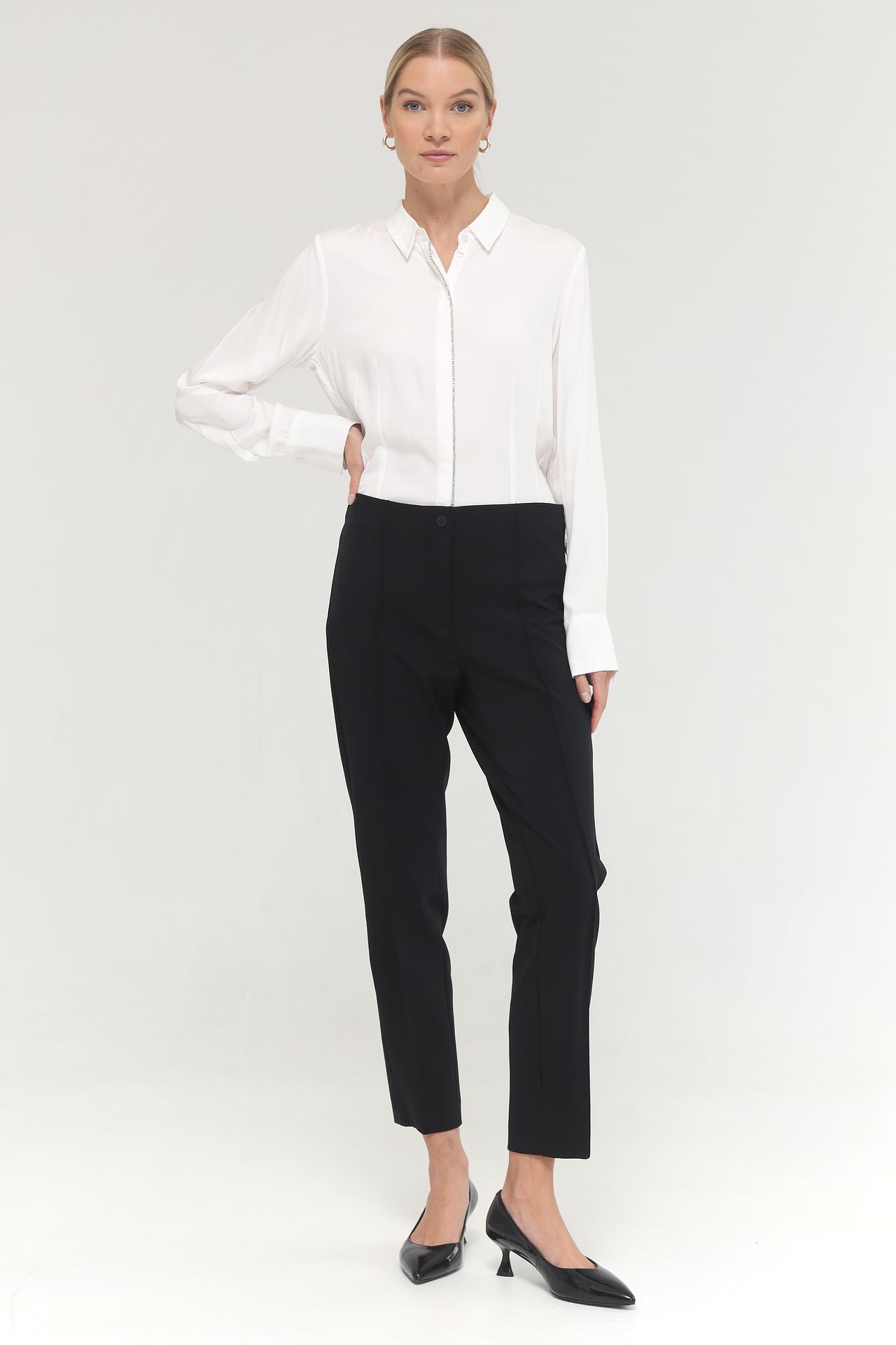 Элегантные брюки ZRS – идеальный выбор для создания утонченного образа. Классический крой и универсальный чёрный цвет делают их незаменимой частью гардероба современной женщины. Благодаря продуманному составу ткани, брюки обеспечивают комфорт и безупречную посадку в течение всего дня.