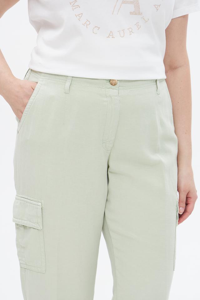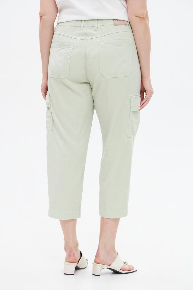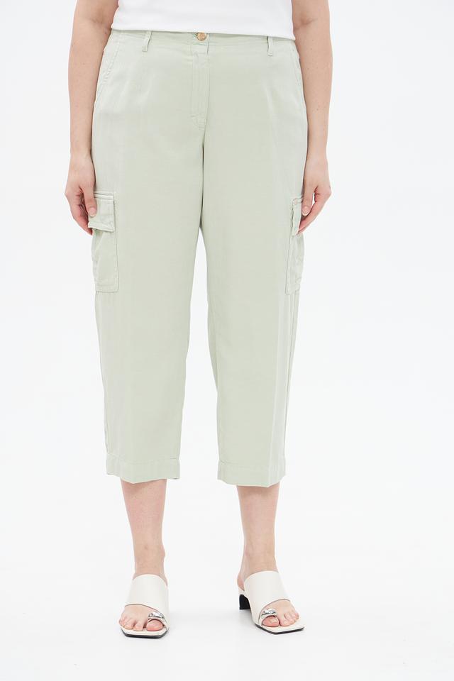 Женские брюки карго ZRS мятного цвета, выполнены из мягкого и приятного к телу лиоцела с хлопком и льном. Удобный крой и функциональные карманы делают их отличным выбором для повседневной носки. Состав: лиоцел 65%, хлопок 22%, лен 13%