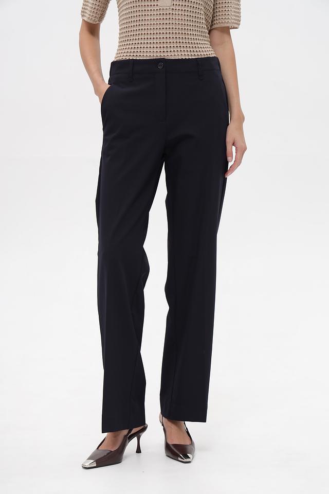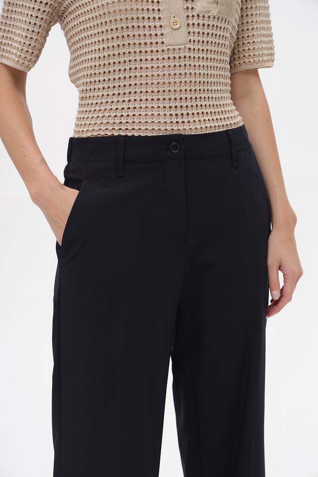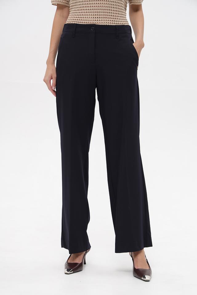Представляем классические брюки от бренда ZRS. Модель выполнена в темно-синем цвете и имеет прямой крой, который подчеркнет достоинства фигуры.
