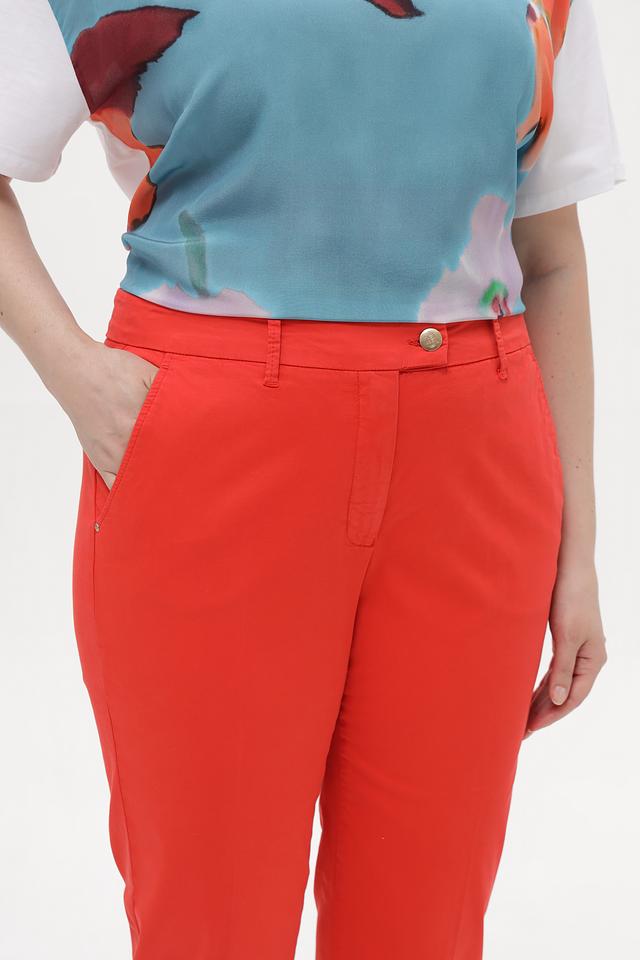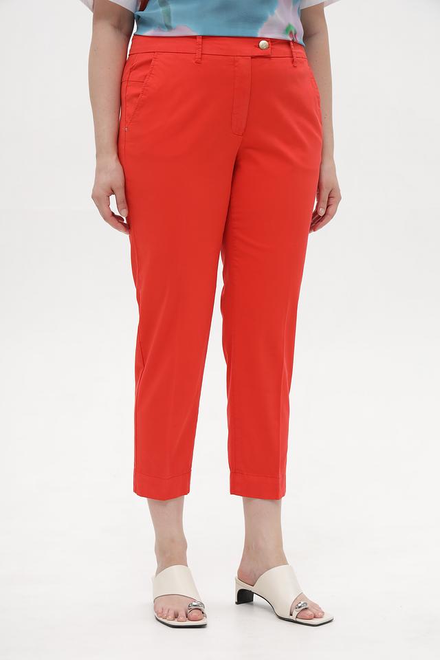 Яркий красный цвет делает эти капри акцентной частью вашего гардероба. Они прекрасно сочетаются с различными топами, блузками и обувью, позволяя создавать разнообразные стильные образы. Состав: хлопок 95%, эластан 5%.