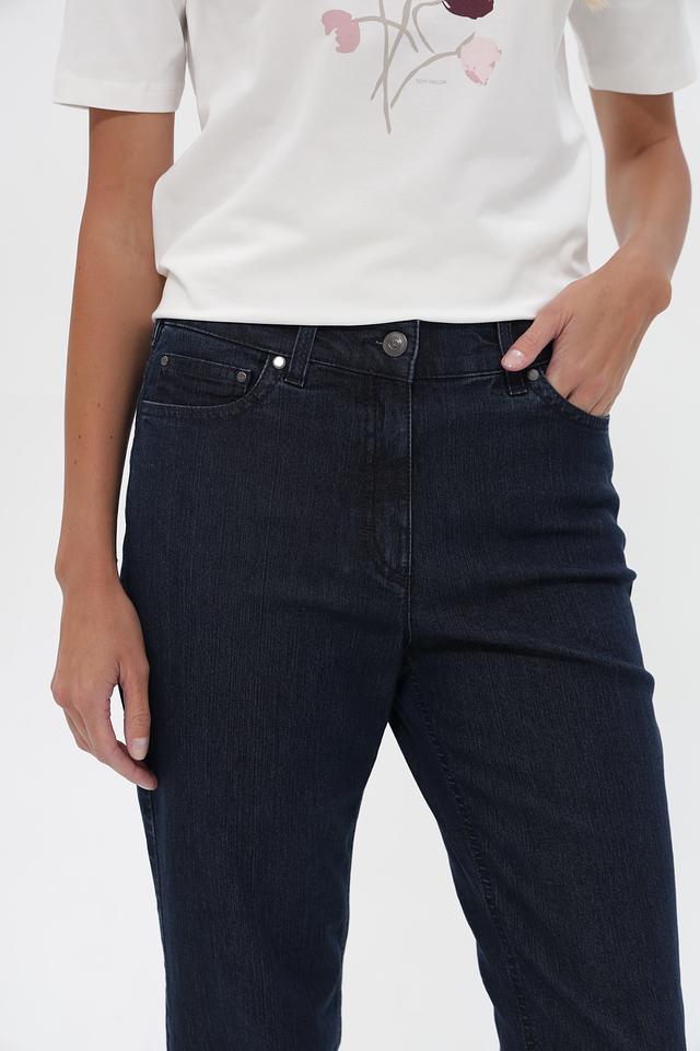 Джинсы имеют стандартную посадку, прямой крой, который визуально стройнит силуэт. Удобный эластичный пояс обеспечивает комфортную посадку по фигуре.